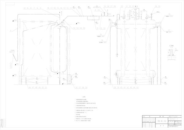 余熱鍋爐由鍋筒、活動(dòng)煙罩、爐口段煙道、斜1段煙道、斜2段煙道、末1段煙道、末2段煙道、加料管(下料溜)槽、氧槍口、氮封裝置及氮封塞、人孔、微差壓取壓裝置、煙道的支座和吊架等組成。 余熱鍋爐共分為六個(gè)循環(huán)回路,每個(gè)循環(huán)回路由下降管和上升管組成,各段煙道給水從鍋筒通過(guò)下降管引入到各個(gè)煙道的下集箱后進(jìn)入各受熱面,水通過(guò)受熱面后產(chǎn)生蒸汽進(jìn)入進(jìn)口集箱,再由上升管引入鍋筒。 各個(gè)煙道之間均用法蘭連接。